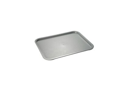 Das moderne Fast Food-Tablett in trendigem -weiß. Die texturierte Oberfläche sieht nicht nur gut aus, sondern verhindert auch Kratzer und wirkt rutschhemmend. praktisches Servier-Tablett mit viel Platz für Teller, Gläser, Tassen, Schalen, etc. rutschfeste Oberfläche bietet sicheren Halt beim Transport von Speisen und Getränken Technische Daten: Material: Polypropylen Farbe: silber Maße (B x H x T): 41 x 30,5 x 2 cm