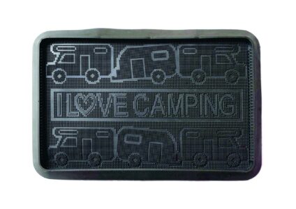 Gummimatte I love Camping für den Innenbereich oder Außenbereich. Ideal um Ihre Schuhe trocknen zu lassen und den Boden vor Verschmutzungen zu schützen. Technische Daten: Größe: 40 x 60 cm Material: 100 % Gummi Farbe: Schwarz Lieferumfang: 1 Fußmatte