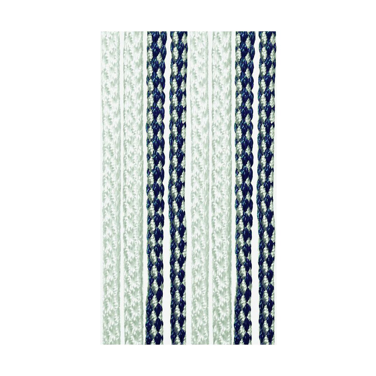 Dekorativer praktischer Türvorhang in einem modernen Design für Caravans, Reisemnobile, Zelte, Vorzelte und Zuhause. Der Türvorhang bietet Schutz vor Insekten, Sonneneinstrahlung und unerwünschten Einblicken Sicht- und Insektenschutz montagefertig Stränge in robuster Kunststoff-Montageschiene eingezogen abwaschbar Technische Daten: Größe: 60 x 190 cm Farbe: weiß, blau Vorhangstrang: zweifarbig Material: 100 % Polyester recycelt