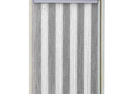 Dekorativer praktischer Türvorhang in einem modernen Design für Caravans, Reisemnobile, Zelte, Vorzelte und Zuhause. Der Türvorhang bietet Schutz vor Insekten, Sonneneinstrahlung und unerwünschten Einblicken Sicht- und Insektenschutz montagefertig Stränge in robuster Kunststoff-Montageschiene eingezogen abwaschbar Technische Daten: Größe: 60 x 190 cm Farbe: silber, weiß Vorhangstrang: zweifarbig Material: 100 % Polyester recycelt