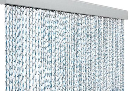 Dekorativer praktischer Schnurvorhang für Caravans, Reisemnobile, Zelte, Vorzelte und Zuhause. Der Türvorhang bietet Schutz vor Insekten, Sonneneinstrahlung und unerwünschten Einblicken hochwertiges Material (100 % recyclebares PVC) abwaschbar und UV-beständig Farbe: weiß/blau Größe: 100×220 cm