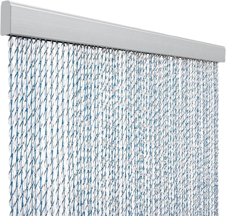 Dekorativer praktischer Schnurvorhang für Caravans, Reisemnobile, Zelte, Vorzelte und Zuhause. Der Türvorhang bietet Schutz vor Insekten, Sonneneinstrahlung und unerwünschten Einblicken hochwertiges Material (100 % recyclebares PVC) abwaschbar und UV-beständig Farbe: weiß/blau Größe: 100×220 cm