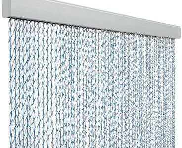 Dekorativer praktischer Schnurvorhang für Caravans, Reisemnobile, Zelte, Vorzelte und Zuhause. Der Türvorhang bietet Schutz vor Insekten, Sonneneinstrahlung und unerwünschten Einblicken hochwertiges Material (100 % recyclebares PVC) abwaschbar und UV-beständig Farbe: weiß/blau Größe: 60 x 190 cm