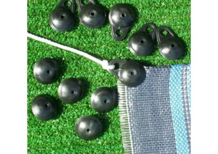 Zum Befestigen des Vorzeltteppichs.Verhindert Verrutschen des VorzeltteppichsMit Loch für HeringeTechnische DatenMaterial: KunststoffMaße (BxLxH): 3,5 x 3,5 x 2 cmPackmaß: 9 x 8,9 x 3,9 cmGewicht: 0,20 kgFarbe: schwarzLieferumfang: 6 Befestigungsclips