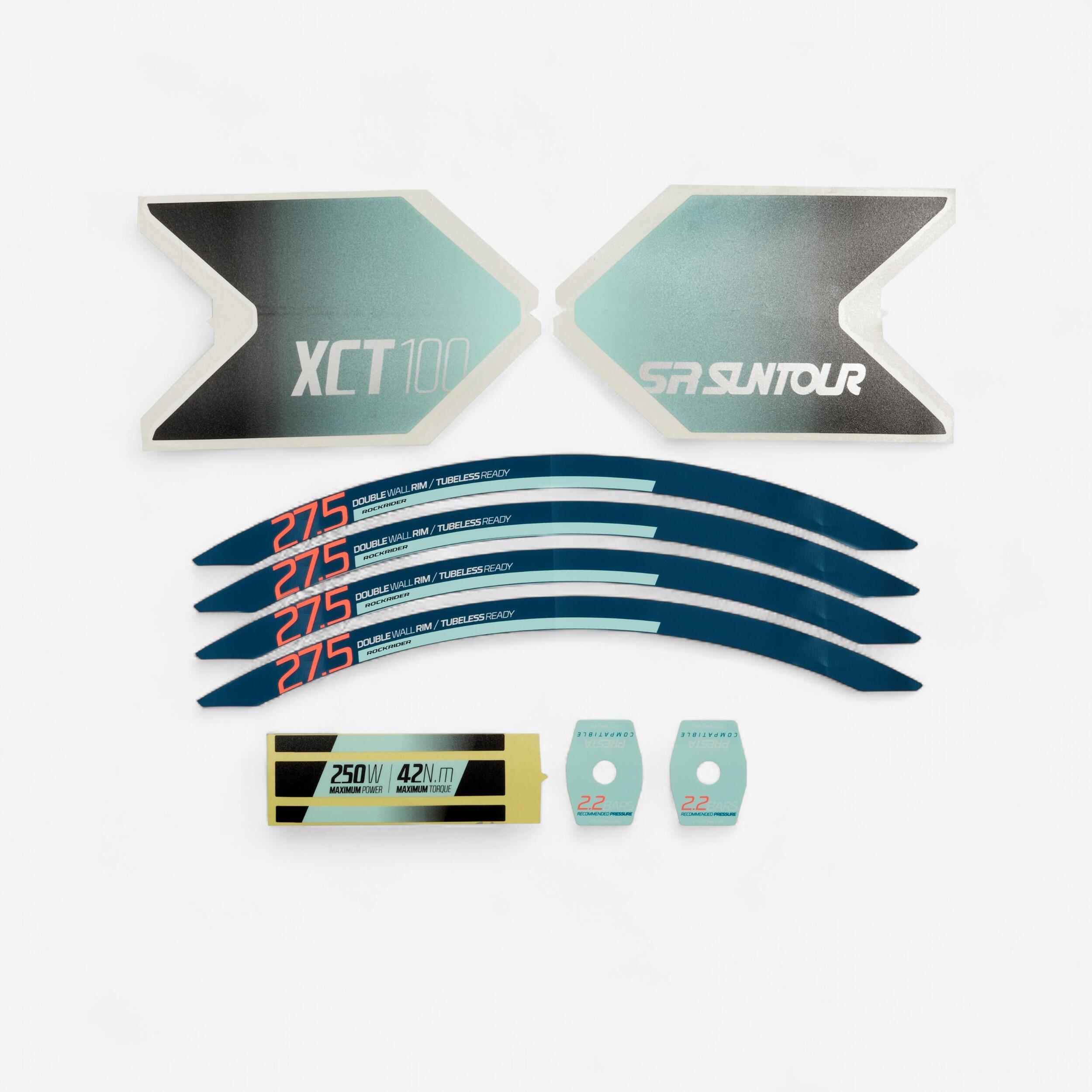 Verpasse deinem Fahrrad eine Verjüngungskur oder wechsle seinen Look Kompatibilität::ROCKRIDER E-ST 100|Kapazität::_ Gabelaufkleber _ Motoraufkleber _ Laufradaufkleber _ Ventilaufkleber|Personalisierung::Ein Look wie am ersten Tag, ein Look wie neu, ein neuer Farblook …|Reparatur::Repariere dein Sportgerät und gib ihm so ein zweites Leben!