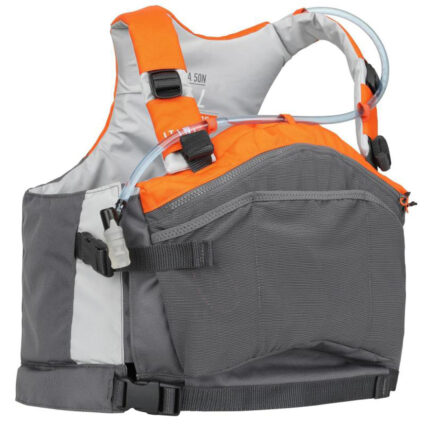 Auftriebsweste 50 N mit Fronttaschen für griffbereites Zubehör und spezielles Fach für 2-l-Trinkblase (nicht inkl.). Die Auftriebsweste (50N) entspricht der Norm EN ISO 12402‒5. |In den Bauchtaschen werden griffbereite Utensilien verstaut. |Fach für Trinkblase mit 2 l (nicht inkl.). Schlaufe für Trinkschlauch am Träger.|2 Schulter- und 4 Seitengurte einstellbar|Reißfestes Material