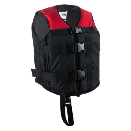 Diese Auftriebsweste für Kinder bietet guten Halt beim Wakeboarden durch drei Verschlussschnallen, Verstellsystem und Schrittgurt.