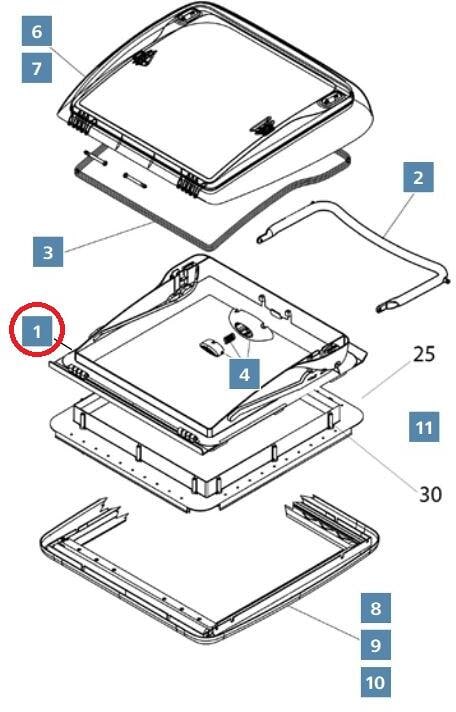 Außenrahmen für Mini Heki FLFarbe: cremeweißAbbildung Nr. 1 (gem. Explosionszeichnung)Dometic Art. Nr.: 4460004064
