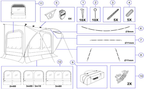 Baldachin-Gestänge Dachseiten oben 3,1m Gr. M/L/XL – Thule Ersatzteil Nr. 1500602878 – passend zu Thule QuickFit