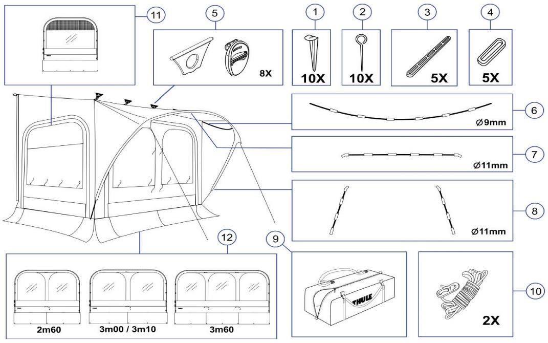 Baldachin-Gestänge Dachseiten oben 3,6m Gr. M/L/XL – Thule Ersatzteil Nr. 1500602784 – passend zu Thule QuickFit
