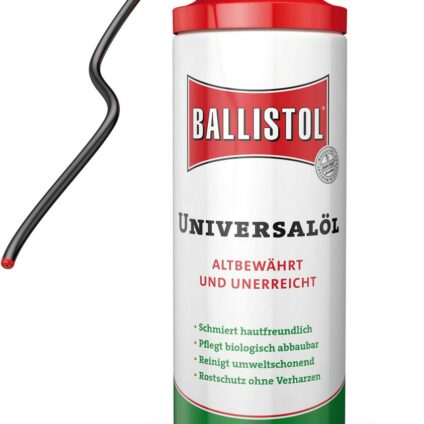 Der Klassiker unter den Allroundmitteln. Die wirksamen Bestandteile sind natürlicher Herkunft, das Basisöl ist medizinisch reines Weißöl. Ballistol ist absolut harz- und säurefrei sowie alterungsbeständig. Alle Bestandteile sind weitestgehend abbaubar und unschädlich für die Umwelt. Ballistol kriecht aufgrund seiner geringen Oberflächenspannung in die engsten Winkel und Ritzen, schmiert und schützt so hervorragend. Auch Leder wird effektiv gegen Austrocknung, Wasser und andere Schäden geschützt….