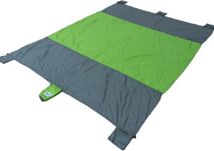 Die Picknickdecke für den Strand. Sie ist groß, sie ist leicht und sie schützt vor Sand und Staub. Diese Stranddecke ist aus Fallschirmnylon 210D und sehr leicht ausgeführt. Sie bietet keine Polsterung und ist auch nicht wasserdicht. Dafür passt sie in nahezu jedes Gepäck, lässt einen den Boden spüren was am Sandstrand ja durchaus gewollt ist und bietet richtig viel Platz (ca. 6 qm). Mit den Sandtaschen an jeder Ecke kann sie gut beschwert werden und die Ösen dienen zur Befestigung am Boden mit Heringen…