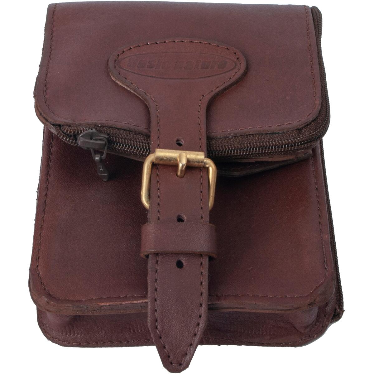 Gürteltasche aus Vollrindleder mit genügend Platz für die wichtigsten Dinge. Fächer für Schlüssel und Schlaufe für den Schlüsselring, Abteile für Geldscheine, Kleingeld, Pass, Papiere, Tickets oder Smartphone stehen zur Verfügung. Durchgehendes Dokumentenfach mit seitlichem Reißverschluss. Zwei robuste Gürtelschlaufen und die handgearbeitete Messingschnalle runden die gelungene Erscheinung ab. Technische Daten: Maße: 10,5 x 14 x 6 cm (B x H x T) Gewicht: ca. 140 g Material: Leder
