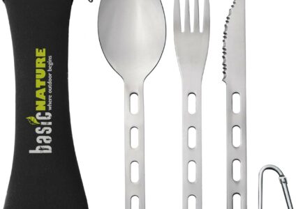 Robustes Besteckset mit scharfem Sägemesser, Gabel und Löffel für den Einsatz in der freien Wildbahn. Das Set wird mit praktischem Neoprenbeutel und Karabiner geliefert. Aus Edelstahl gefertigt ist es sehr langlebig. inklusive Tasche und Karabiner aus robustem Edelstahl Technische Daten: Maße: 17,0 x 4,0 cm, 106 g (inkl. Tasche) Maße Tasche: 20 x 6 cm Gewicht 106 g Material: Edelstahl