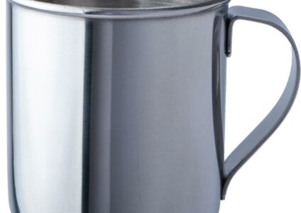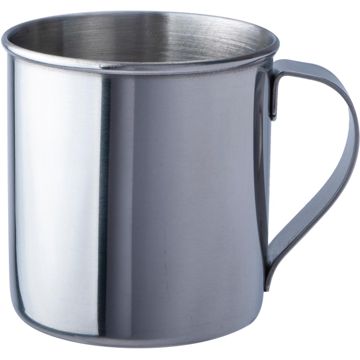 Einwandiger, polierter Edelstahlbecher in sehr guter Qualität und formschöner Ausführung. Mit stabilem Edelstahlgriff. Technische Daten: Material: Edelstahl Gewicht: 72 g Maße: Schlupf 9,3 cm, Ø innen 6,3 x H 6,4 cm Volumen: 200 ml