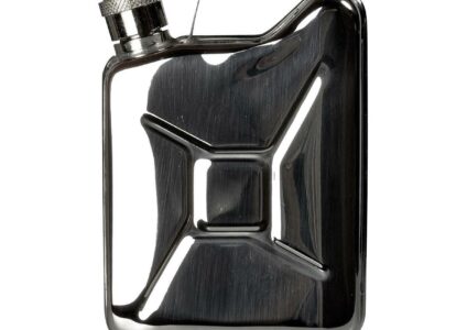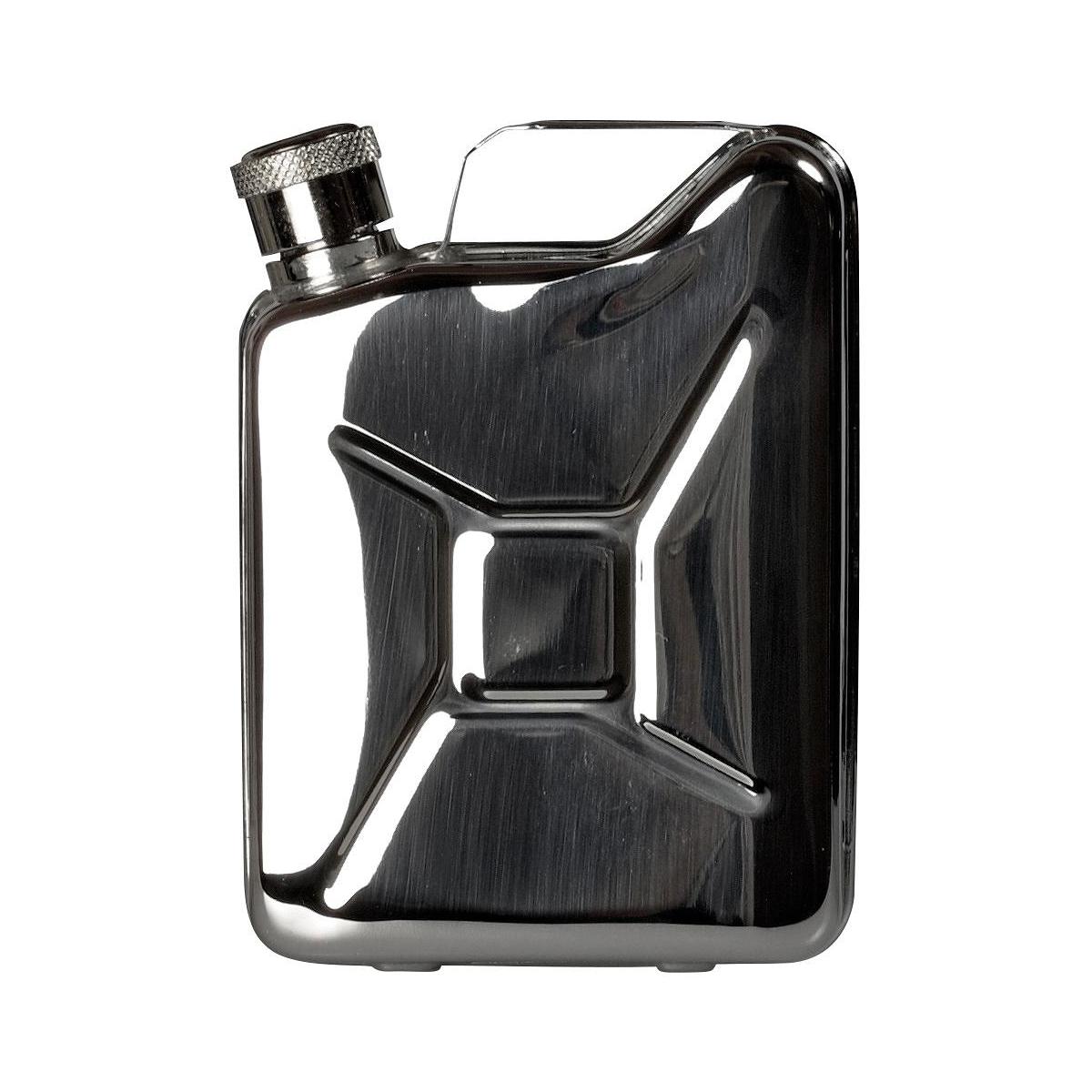 Aus poliertem Edelstahl. Damit haben Sie immer ein bisschen Brennstoff in Reserve. Technische Daten: Gewicht: 110 g Maße: 3,5 x 7,7 x 10 cm Volumen: 180 ml Material: Edelstahl Lieferumfang: Flachmann Kannister