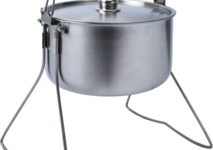 Der BasicNature Hordentopf bietet ausreichend Volumen für das Ferienlager, das zünftige Biwak oder die Gartenparty. Gefertigt aus hochwertigem Edelstahl zeichnet er sich dennoch durch relativ geringes Gewicht aus. Die zwei außerhalb des Schwerpunktes angebrachten Henkel bieten beim Tragen und am Dreibein sicheren Halt. Ausgerüstet mit den mitgelieferten Standbeinen kann der Topf über einen Kocher oder ein Feuer gestellt werden. Somit ist der Topf für jede erdenkliche Kochstelle geeignet, vom…