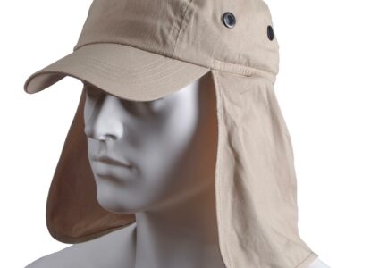 Legionärskappe aus Baumwolle mit fest angebrachtem Nackenschutz. Schützt ideal Nacken und Ohren vor zuviel Sonne. Technische Daten: Größe: S (54/55) Material: 100 % Baumwolle Farbe: beige Lieferumfang: 1 x Legionärskappe