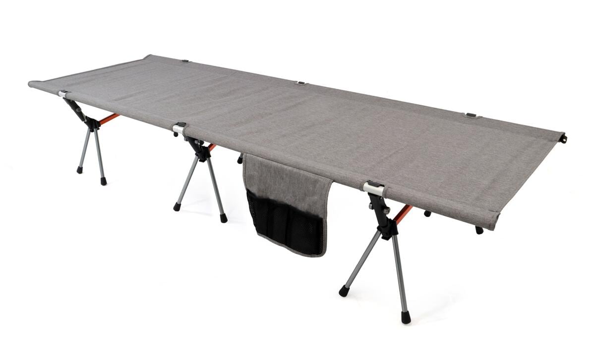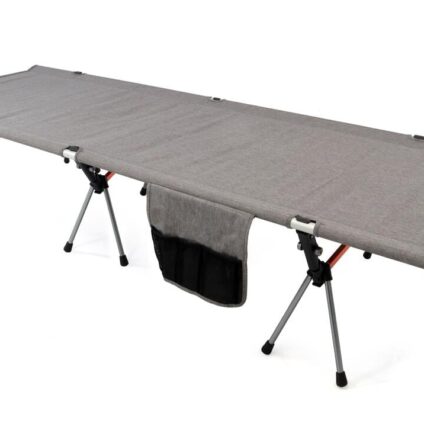 Ultraleichtes und höhenverstellbares Campingbett mit sehr kleinem Packmaß. Durch die abnehmbaren Beinstützen aus stabilem Aluminium ist der Rahmen auf zwei Höhen einstellbar (min. Höhe 18 cm, max. Höhe 38 cm). So kann man, wenn der Boden warm ist, auf die Beinstützen verzichten und das Transportgewicht reduzieren. Bei kalten oder gefrorenen Böden wiederum lässt sich mit den Beinstützen ein größerer Abstand zum kalten Boden schaffen. Dank seines stabilen Metallrahmens besitzt das Bett eine Tragkraft bis…