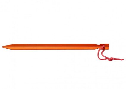 Standardhering für härtere Böden und etwas steinigeren Untergrund. In gut sichtbarer Ausführung aus Aluminium. Y-Form mit Schlaufe zum einfachen herausziehen des Herings. Technische Daten: Material: Aluminium Länge: 23 cm Gewicht: 16 g Farbe: orange Lieferumfang: 5 Stück