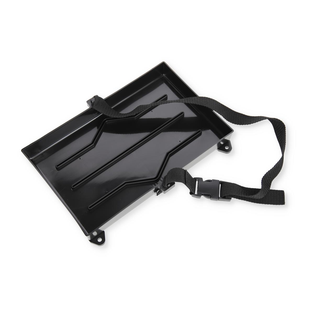 Batteriehalter 27,5x17cm, durch Gurt mit Schnellverschluss, schnelles befestigen Ihrer Batterie Technische Daten: Maße: 27,5 x 17 cm Material: Kunststoff Farbe: Schwarz