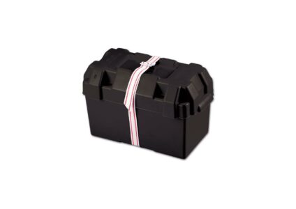 Batteriekasten mit Spanngurt zur sicheren Verstauung Ihrer Batterie. Technische Daten: Abmessungen: 38 x 20 x 25 cm Wanddicke: 2,5 mm Farbe: schwarz