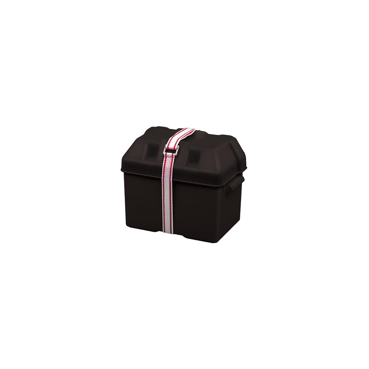 Batteriekasten mit Spanngurt zur sicheren Verstauung Ihrer Batterie. Technische Daten: Abmessungen: 29 x 19,5 x 25 cm Wanddicke: 2,5 mm Farbe: schwarz