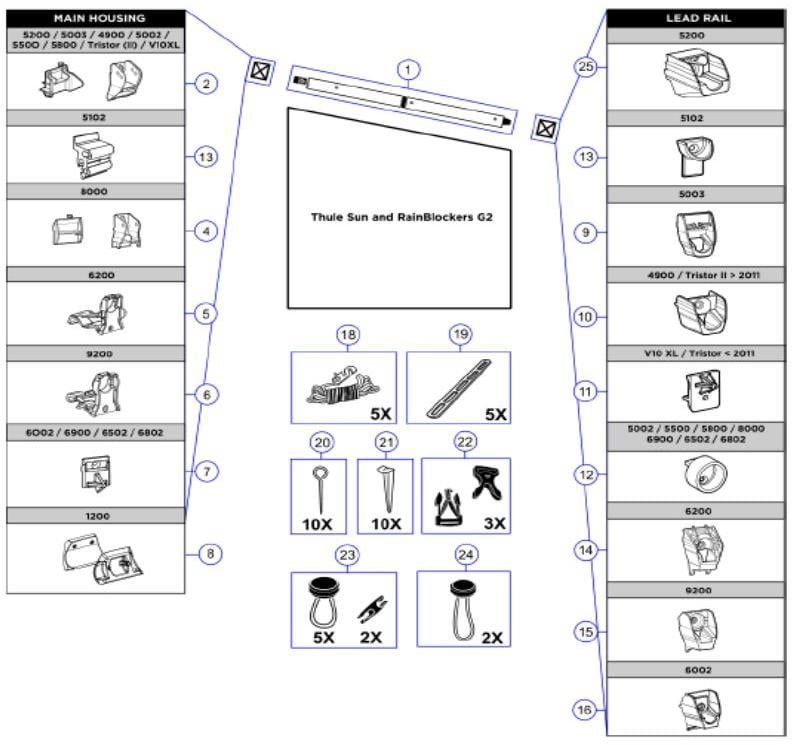 Markisentyp: Thule Omnistor 5102 passend für: Thule Residence / Panorama 5102, Thule Smart Blocker Abbildung Nr. 13 Thule Ersatzteil-Nr. 1500603376