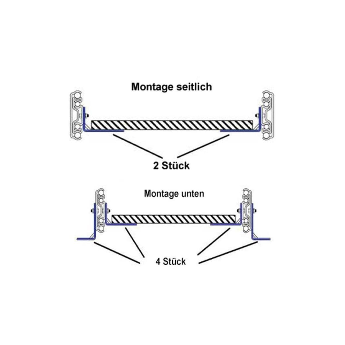 Winkel zur Befestigung von Vollauszug 711 mm Lieferumfang: 2 Stück Hinweis: Abbildung zeigt Befestigungsmöglichkeiten!