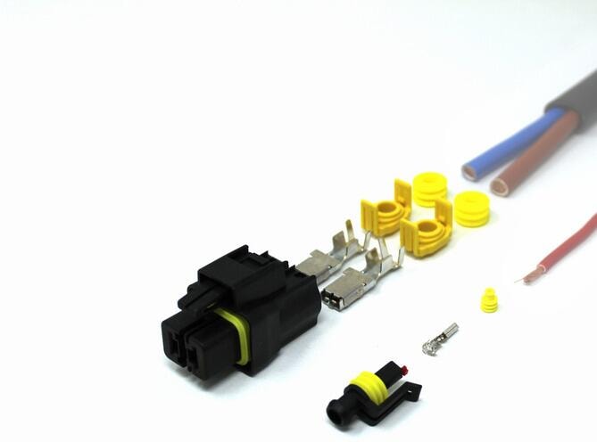 Anschlussstecker ohne Kabel zum Selbstbau eines Verbindungskabels mit 2 x 25mm2. Hinweis: Kabel und 100 A Sicherung nicht im Lieferumfang enthalten.