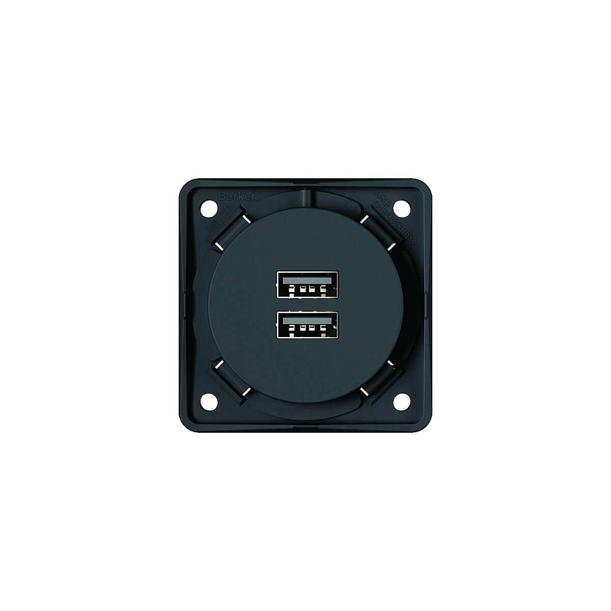 Berker Integro FLow/Pure Doppel USB-Ladesteckdose, 230V, anthrazit
