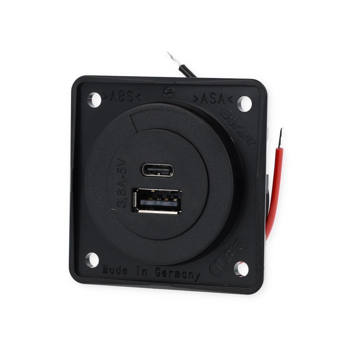 Die Berker 12 V USB Ladesteckdose mit 2-facher USB-Buchse: 1 USB-Buchse Typ A und 1 USB-Buchse Typ C. Technische Daten: Max. Ausgangsstrom: 3 A Spannung: 12 V Material: Kunststoff Farbe: schwarz matt Lieferumfang: 1 USB-A/-C Ladesteckdose