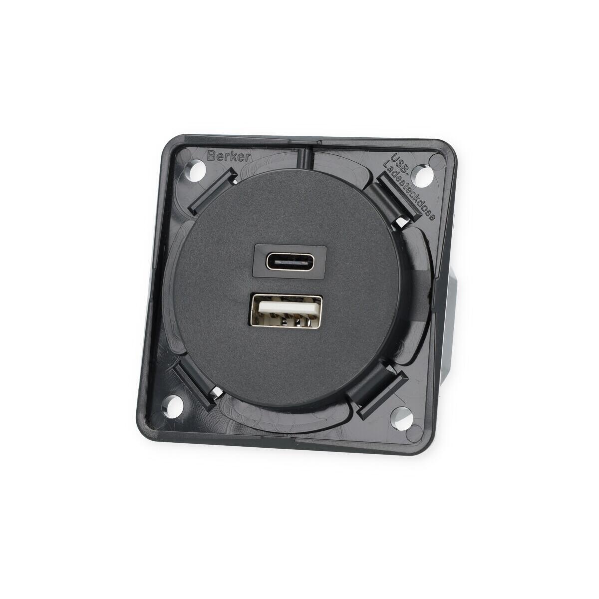 Berker Integro Flow/Pure USB-Ladesteckdose, USB-A /USB-C, 230V, anthrazit