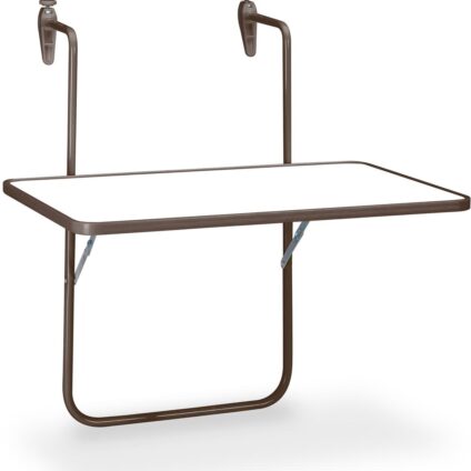 Individuell einsetzbarer Balkonhängetisch. Der Hängetisch eignet sich für eine maximale Brüstungsbreite von 15 cm. witterungsbeständigeinfach zu reinigelässt sich platzsparend abklappenstabil & robustTechnische Daten:Farbe: Weiß/BraunBreite: 60 cmTiefe: 40 cmHöhe: 5 cmmaximale Brüstungsbreite von 15 cmMaterial: Stahl/Kunststoffklappbar: JaLieferumfang: 1 Balkontisch