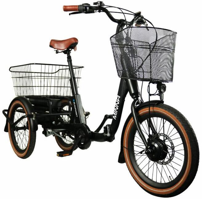 Faltbares elektrisches Lastenrad/E-Trike MINNA Elektrisches Lastenrad mit Frontmotor. Das faltbares E-Trike für schwere Lasten und sichere Touren. Mit Feststellbremse, Klappmechanik und Schwenk-Mechanismus für mehr Wendigkeit. Einfach zusammengeklappt dank intelligentem Spannmechanismus Mit wenigen Handgriffen ist das Lastenfahrrad durch den intelligenten Schnellspannmechanismus inklusive faltbarer Pedale und Lenkstange zu den verhältnismäßig kleinen Abmaßen von 125 × 75 × 105 cm (L × B × H)…