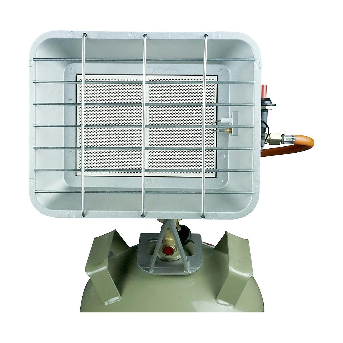 Zur Direktmontage an 5 kg und 11 kg Propangasflaschen. regelbar mit Schlauch und Regler mit Zündsicherung und Piezozündung Technische Daten: Maße (BxHxT): 29 x 23,5 x 10,5 cm Packmaß (BxHxT): 34 x 24 x 12 cm Material: Aluminium-Druckguss Anschluss: 50 mbar Leistung: 2700 – 4200 W Verbrauch: 200 – 306 g/h Gewicht: 1,96 kg