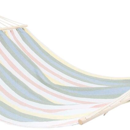 Eine bunte und solide Hängematte aus der Pastel-Kollektion. Zum Entspannen im Urlaub, im Garten oder auf dem Balkon. Die Hängematte hat an den Enden einen Spreizstab von 118 cm, so dass der Stoff immer ganz offen ist. Sehr luxuriöse komfortable Hängematte Robuste Qualität aus Baumwolle/Polyester für den Innen- und Außenbereich Inklusive Spreizstab von 118 cm für einen wunderbar stabilen Standort Die Hängematte bleibt durch den Spreizstab immer offen Technische Daten: Material: Baumwolle Polyester…