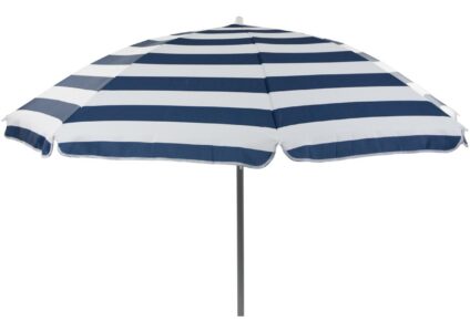 Ein schöner Sonnenschirm mit Stahlrahmen. Bietet Schutz vor schädlichen Sonnenstrahlen, hat eine UV-beständige Innenseite (UPF50). Der Mast des Sonnenschirms hat einen Durchmesser von 22 Millimetern. Stabiler Sonnenschirm, höhenverstellbar für den Einsatz im Sand, in einem Sonnenschirmfuß oder in einer Tischöffnung Robustes Polyestergewebe Unterseite mit einer Silberbeschichtung für zusätzlichen UV-Schutz Technische Daten: Produktdurchmesser: 160 cm Produkthöhe: 200 cm Gewicht: 1,2 kg Farbe: weiß, blau…