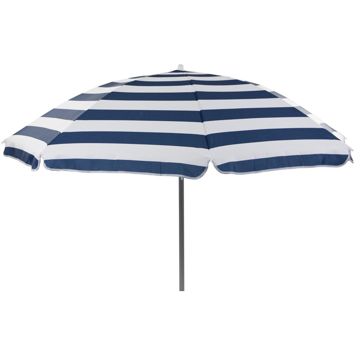 Ein schöner Sonnenschirm mit Stahlrahmen. Bietet Schutz vor schädlichen Sonnenstrahlen, hat eine UV-beständige Innenseite (UPF50). Der Mast des Sonnenschirms hat einen Durchmesser von 22 Millimetern. Stabiler Sonnenschirm, höhenverstellbar für den Einsatz im Sand, in einem Sonnenschirmfuß oder in einer Tischöffnung Robustes Polyestergewebe Unterseite mit einer Silberbeschichtung für zusätzlichen UV-Schutz Technische Daten: Produktdurchmesser: 160 cm Produkthöhe: 200 cm Gewicht: 1,2 kg Farbe: weiß, blau…