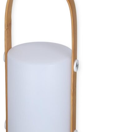Eine stimmungsvolle wiederaufladbare Tischlampe im stilvollen Outdoor-Look. Verleiht ein angenehmes Licht durch die warmweiße LED-Beleuchtung. Ausgestattet mit 3 Lichtmodi, einem Kunststoffgehäuse und einem Bambusgriff. Der eingebaute Li-Ionen-Akku kann mit einem mitgelieferten USB-Kabel aufgeladen werden. Ideal für einen Tisch oder Schrank. Stimmungsvolle wiederaufladbare Tischleuchte mit stilvollem Look. Warmweiße LED-Beleuchtung mit 3 Lichtmodi. Ausgestattet mit einem Kunststoffgehäuse mit…