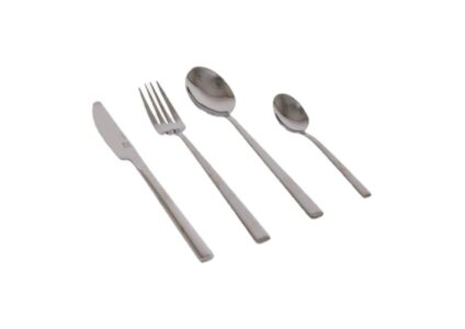 Stylisches Besteckset im eleganten Design von Bo-Camp. Geeignet für 4-Personen Starker Edelstahl Spülmaschinengeeignet Technische Daten: Material: Edelstahl Farbe: silber Gewicht: 550 g Inhalt: 4 Messer 4 Gabeln 4 Löffel 4 Teelöffel