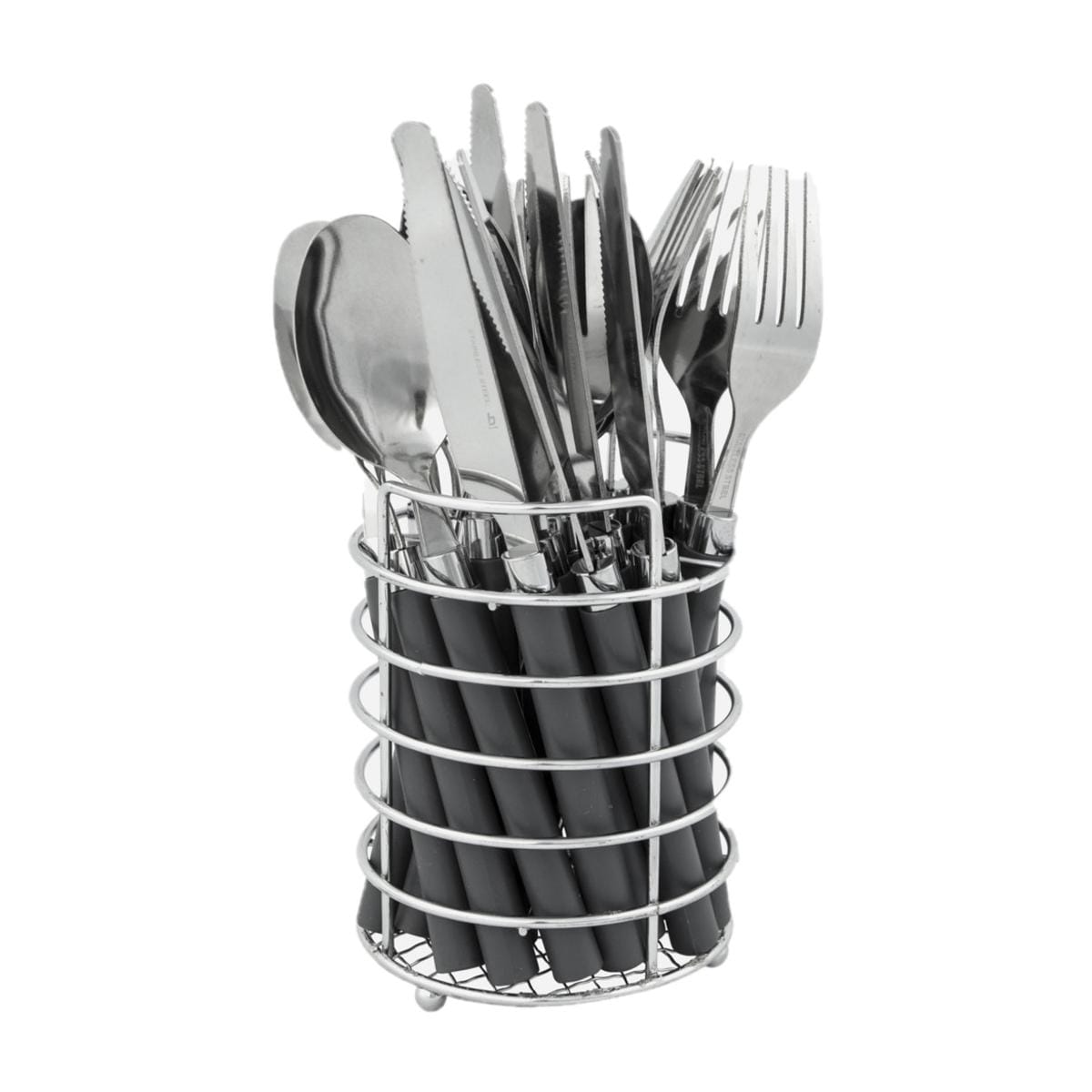 Bo-Camp Besteckset im Korb, 24-teilig, grau