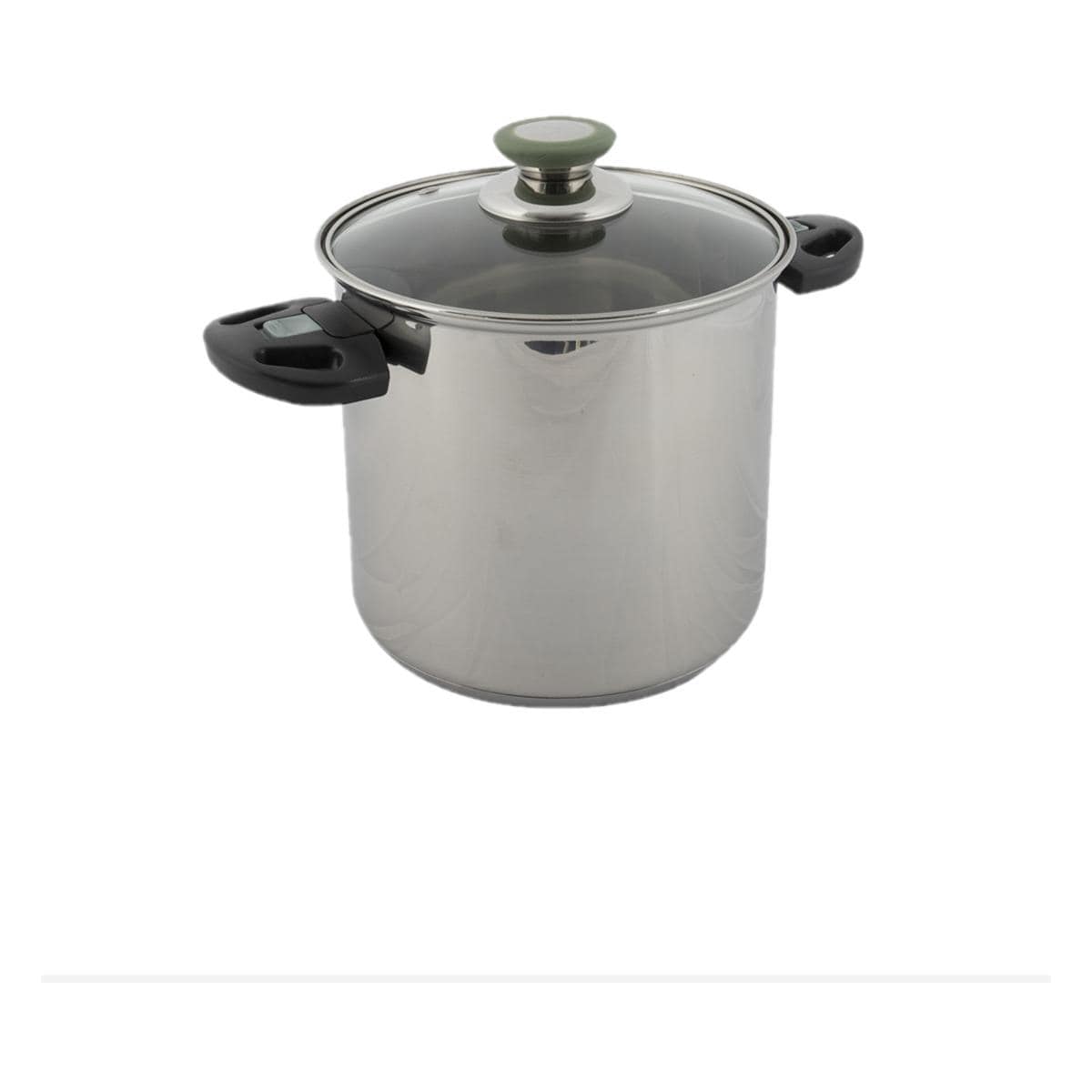 Bo-Camp Elegance Topf aus Edelstahl mit hitzebeständigen, faltbaren Griffen. faltbare Griffe induktionsgeeignet stapelbar Technische Daten: Material: Edelstahl Farbe: silber Maße: Ø 20 cm, H 19 cm Volumen: 6 L Gewicht: 1,8 kg