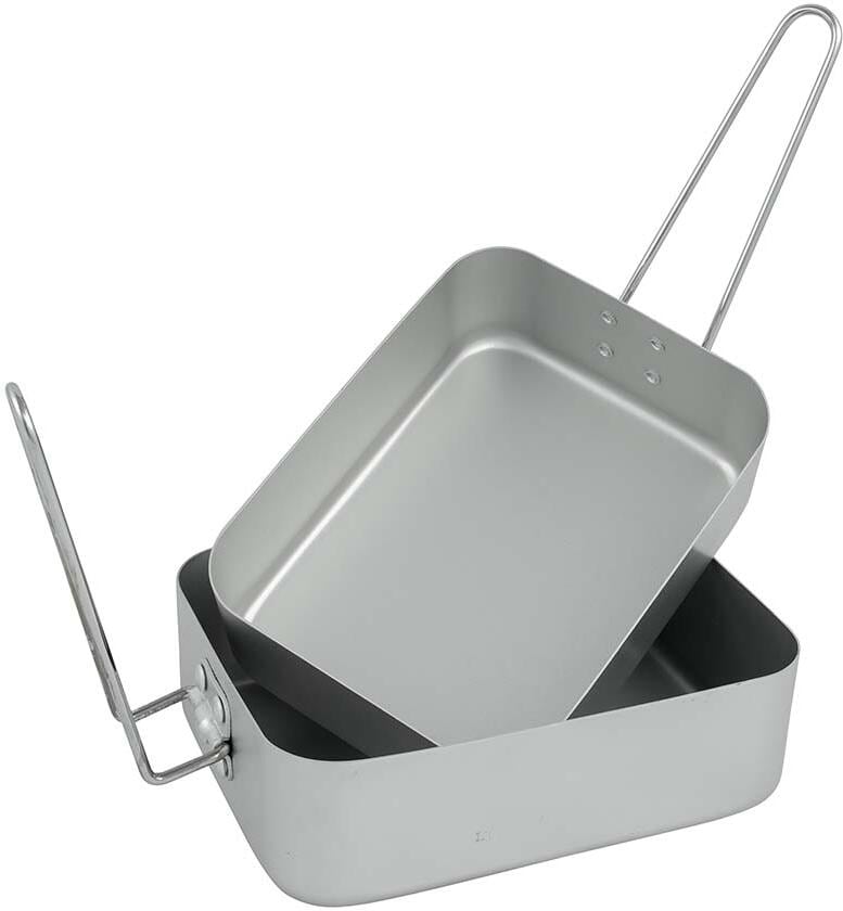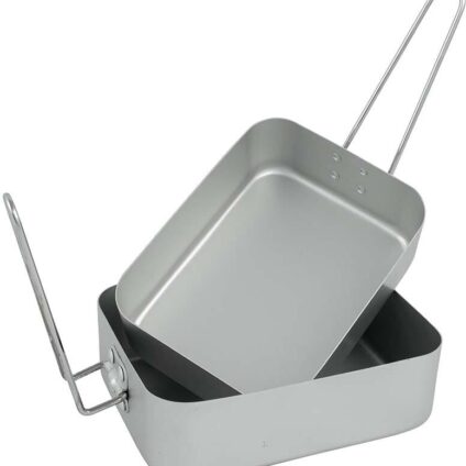 Ein 2-teiliges Set mit rechteckigen Topfset. Beide Pfannen sind mit einem Stahlklappgriff ausgestattet, der leicht umzuklappen ist. Die Pfannen sind stapelbar und somit platzsparend zu verstauen. Faltbares Aluminiumpfannen Ausgestattet mit einem Klappgriff aus Stahl Hergestellt aus extra starkem Aluminium Kann auch als Auflaufform verwendet werden Kompakt zu tragen Technische Daten: Material: Aluminium Produktlänge: 19 cm Produktbreite: 15 cm Farbe: silber Fassungsvermögen: 0,9 und 1,5 Liter Maße…