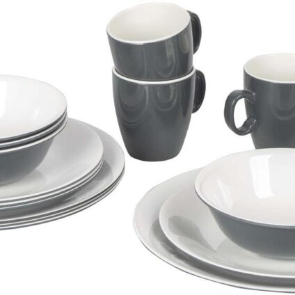 Bo-Camp Geschirrset, 16-teilig, Melamin, grau