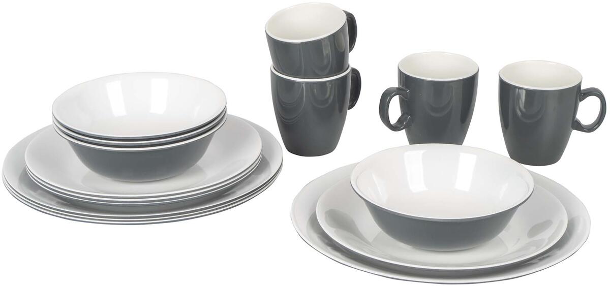 Bo-Camp Geschirrset, 16-teilig, Melamin, grau