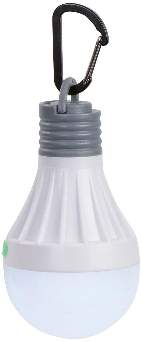 Eine kugelförmige Hängelampe. Diese wasserdichte Hängelampe verfügt über eine LED und zwei Licht-Modi: 50%, 100% und Blinkmodus. Die Lampe kann schnell und einfach mit dem Karabiner aufgehängt und beispielsweise auch mit einem Magneten an einer Eisenwand befestigt werden. Funktioniert mit 1 x AA Batterien (nicht im Lieferumfang enthalten) Brenndauer: 20-8 Stunden. Lichtertrag: 15-35 Lumen.Eine Hängelampe in Glühbirnenform3 verschiedene Lichtstufen (50%, 100% und Blinkmodus)Kann mit Karabiner oder Magnet…