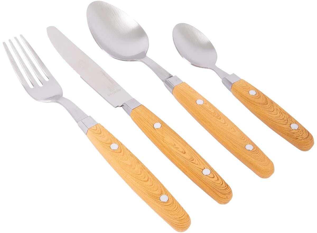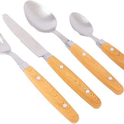 Ein stilvolles 16-teiliges Besteckset aus der Urban Outdoor-KollektionDieses praktische Set ist geeignet für 4 Personen und besteht aus 4 Messern, 4 Gabeln, 4 Löffeln und 4 kleinen Teelöffeln. Hergestellt aus rostfreiem Stahl mit Kunststoffgriff in Bambusoptik, wodurch das Set eine lange Lebensdauer hat.Ein stilvolles Besteckset mit HolzoptikGeeignet für 4 PersonenLeichtes AluminiumgestellBesteck aus rostfreiem Stahl mit KunststoffgriffTechnische Daten:Farbe: BraunMaterial: EdelstahlMaterial des…