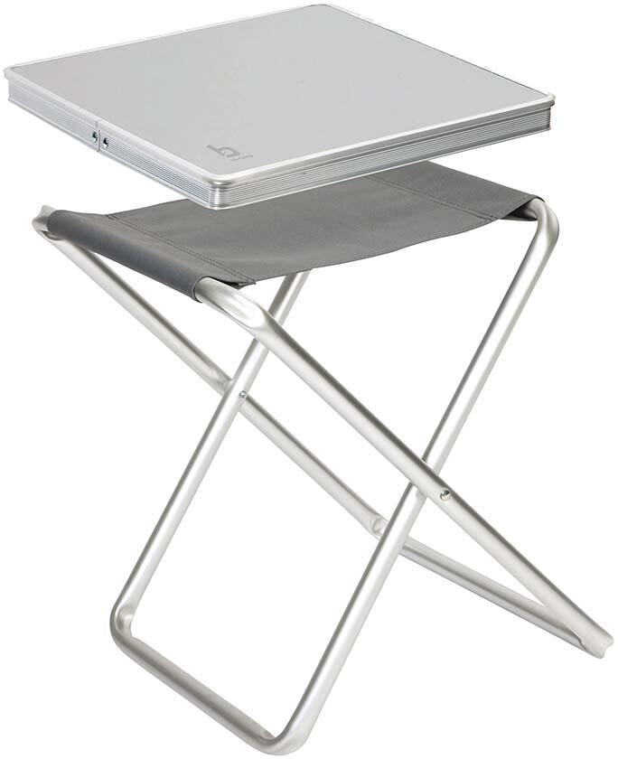Klapphocker mit losem Tablett für multifunktionalen Einsatz. Klapphocker: Aluminium-Rahmen mit solide 600D Polyester-Gewebe. Aussenablage: MDF Ablage mit Aluminiumkante. Klapphocker mit losem Tablett für multifunktionalen Einsatz Technische Daten: Material: Stahl Produktlänge: 40 cm Produktbreite: 40 cm Produkthöhe: 48 cm Gewicht: 1,7 kg Sitzhöhe: 48 cm Sitzbreite: 40 cm Maximale Belastung: 80 kg Farbe: grau