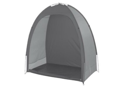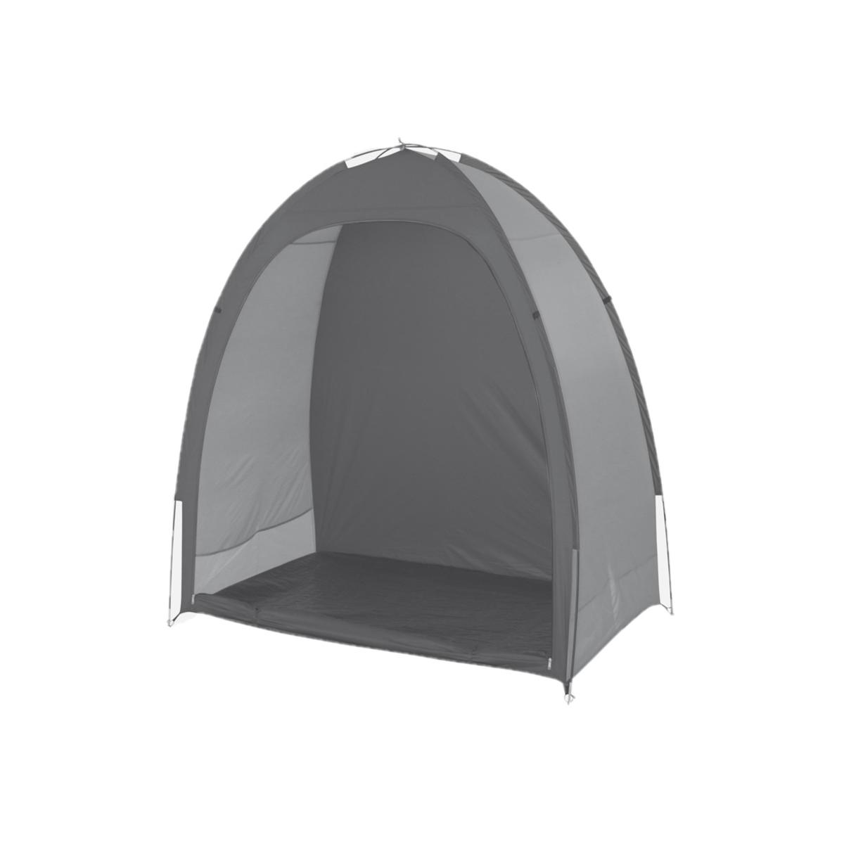 Solides Aufbewahrungszelt zum Schutz gegen Regen. Sehr stabiles Zelt durch gekreuzte Bogenstangen. Vollständig verschließbar und mit getapten Nähten verstehen. Inklusive Transporthülle, Spannleinen und Heringe. Ideal geeignet als Fahrradunterstand. Sehr stabil Vollständig verschließbar Inklusive Transporthülle, Spannleinen und Heringe Technische Daten: Material: Polyester/ Glasfaser Farbe: grau Maße (L x B x H) 180 x 85 x 185 cm Gewicht: 2,1 kg
